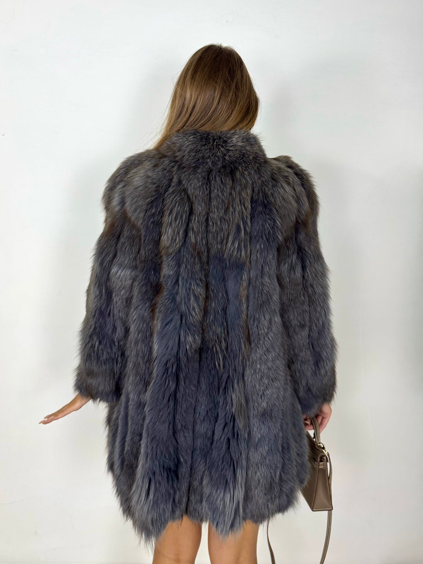 Un capo di grande impatto scenico e raffinatezza: pelliccia in volpe naturale tinta antracite, dal pelo lungo, setoso e luminoso. La morbidezza della volpe avvolge la silhouette in un abbraccio caldo e prezioso, esaltato dalla chiusura con fiocco in raso tono su tono. Perfetta per le occasioni speciali e per chi desidera distinguersi con eleganza assoluta.