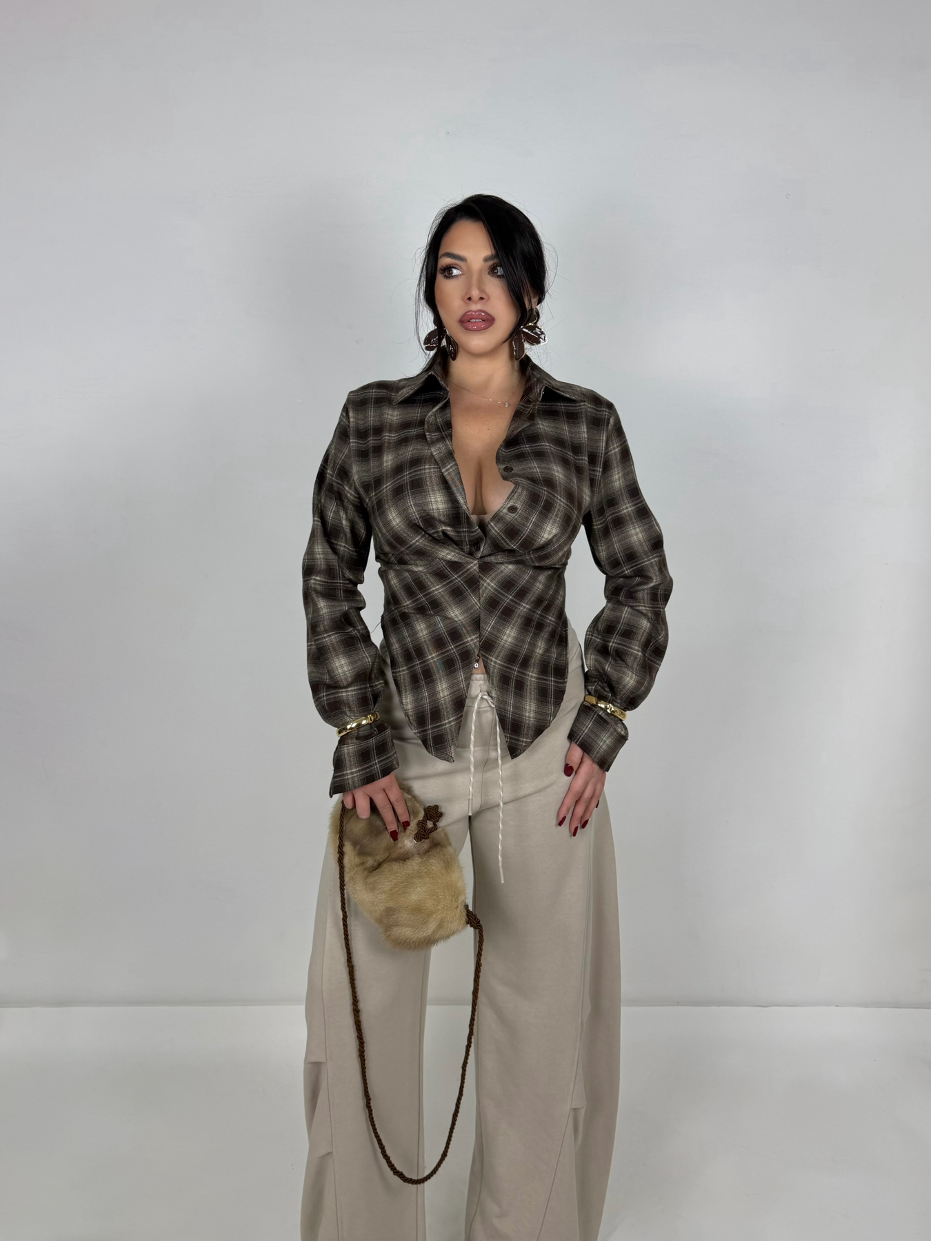 Camicia in flanella con corsetto dietro “Dallas”
