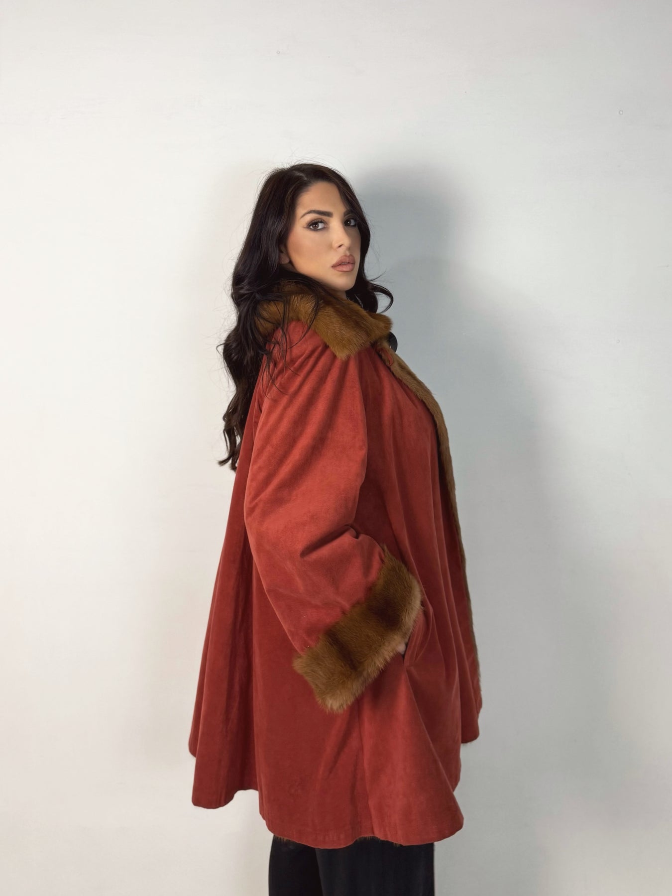 Un capo elegante e funzionale: pelliccia di visone double face, da indossare sia dal lato in morbida pelliccia per un effetto lussuoso e sofisticato, sia dal lato scamosciato in suede per un look più casual e moderno.