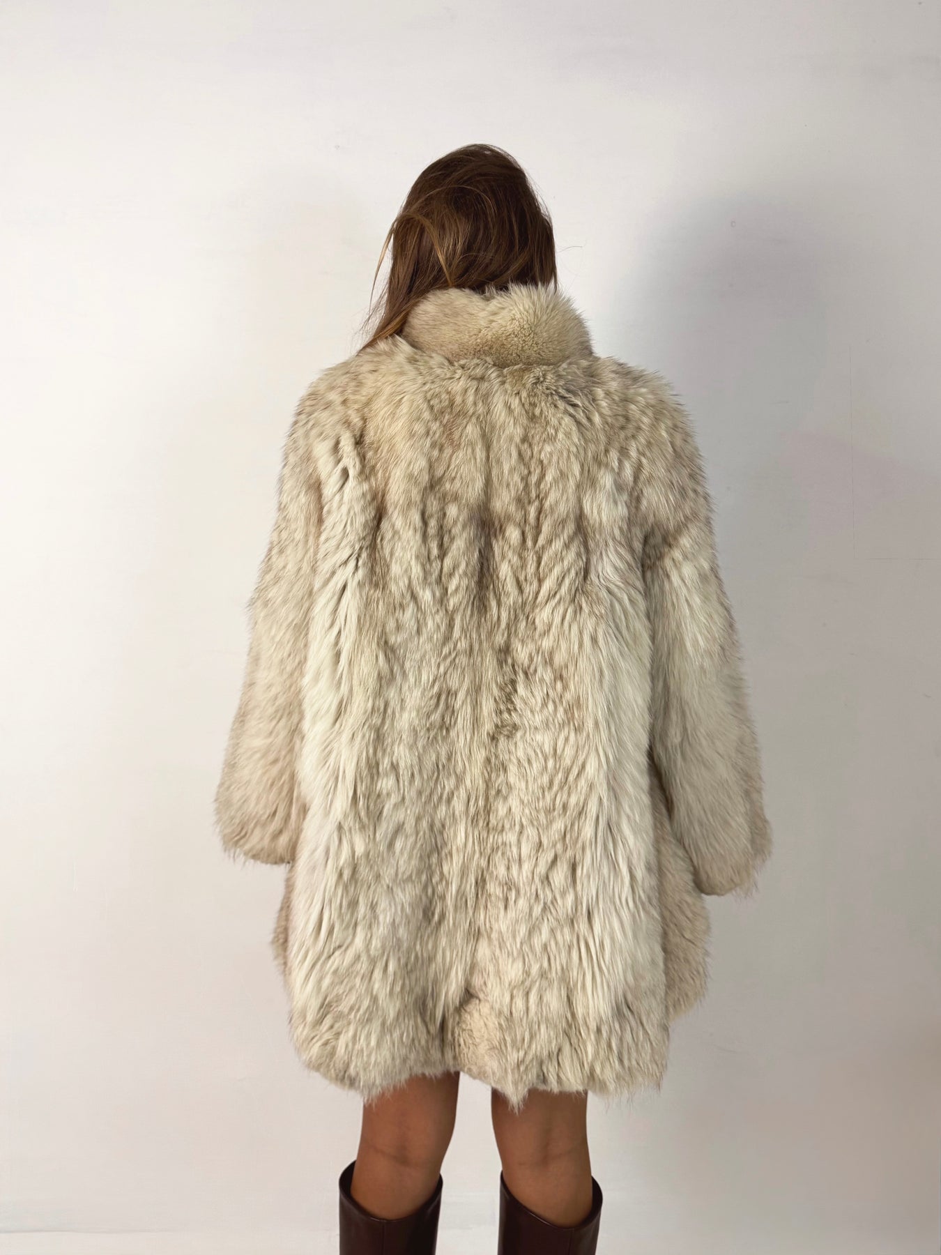 Un capo maestoso e luminoso: la pelliccia corta in volpe naturale chiara conquista con il suo volume avvolgente e le sfumature sofisticate che vanno dal beige all’avorio. Un modello dal carattere deciso, pensato per chi ama distinguersi con eleganza e fascino senza tempo.