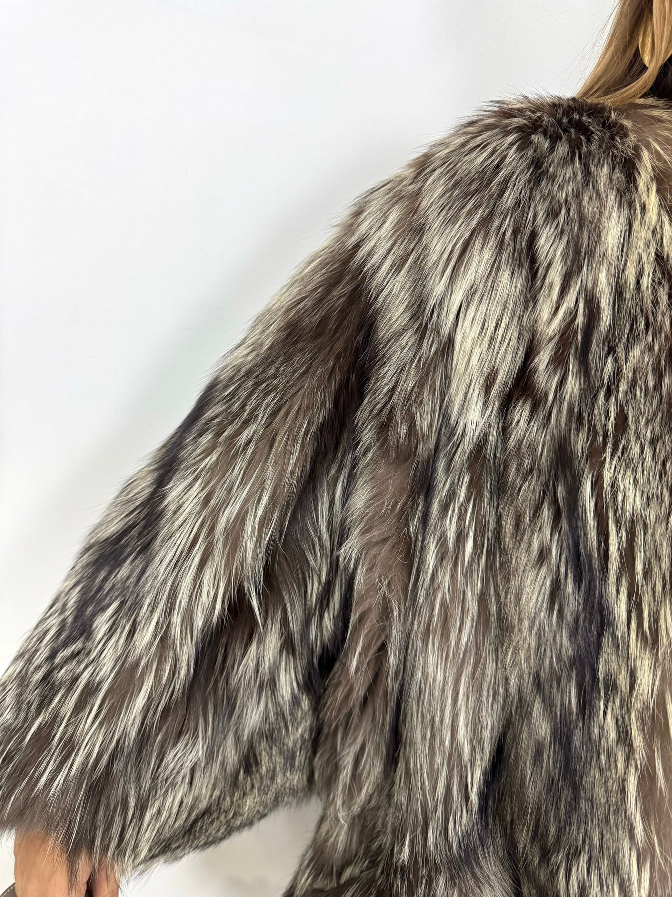 Un capolavoro di eleganza senza tempo: la pelliccia corta in volpe argentata naturale.
