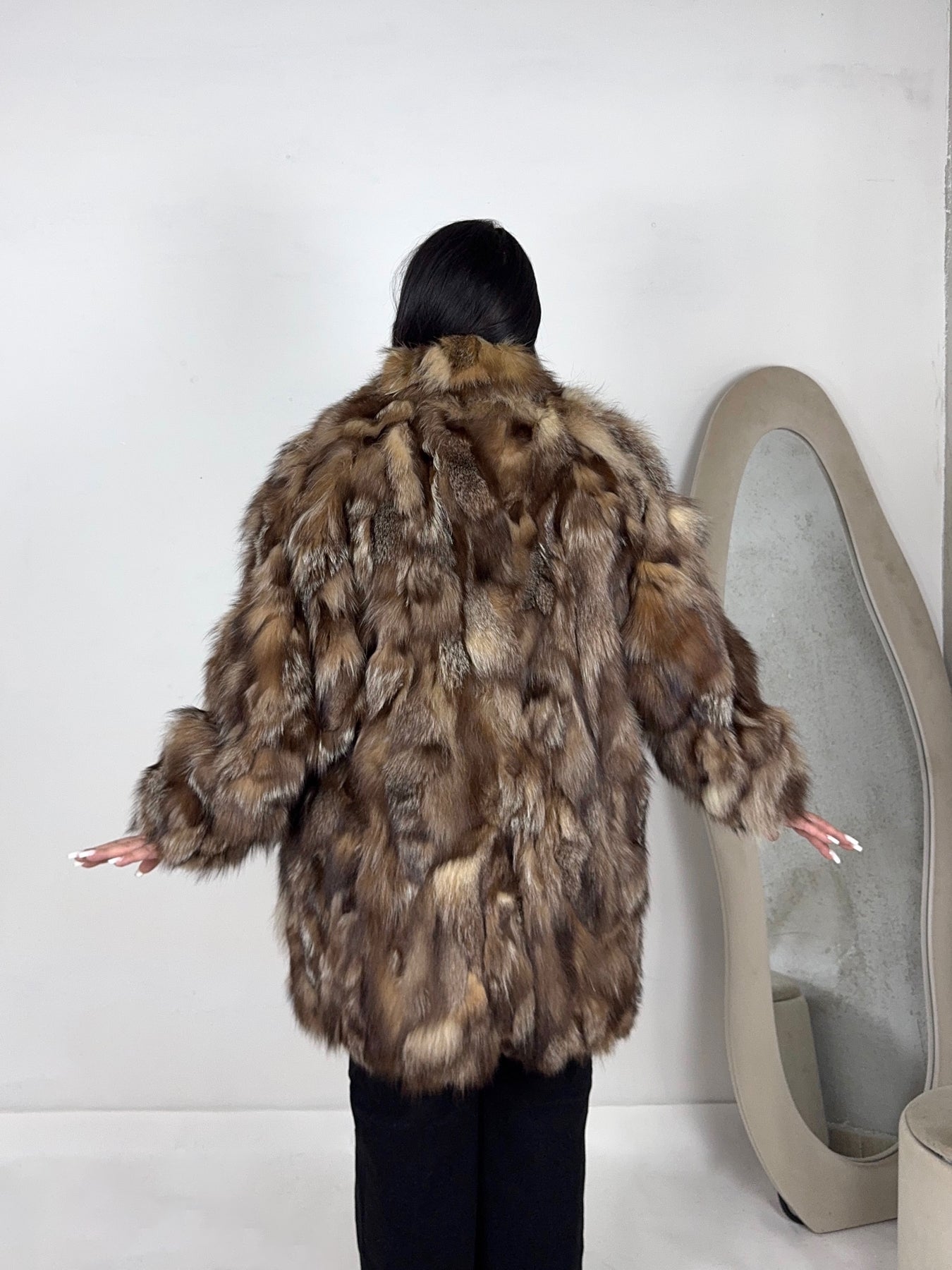 Un capo dal fascino autentico e intramontabile: pelliccia lunga in volpe naturale, caratterizzata da un volume sontuoso e dalle sue inconfondibili sfumature calde e naturali.