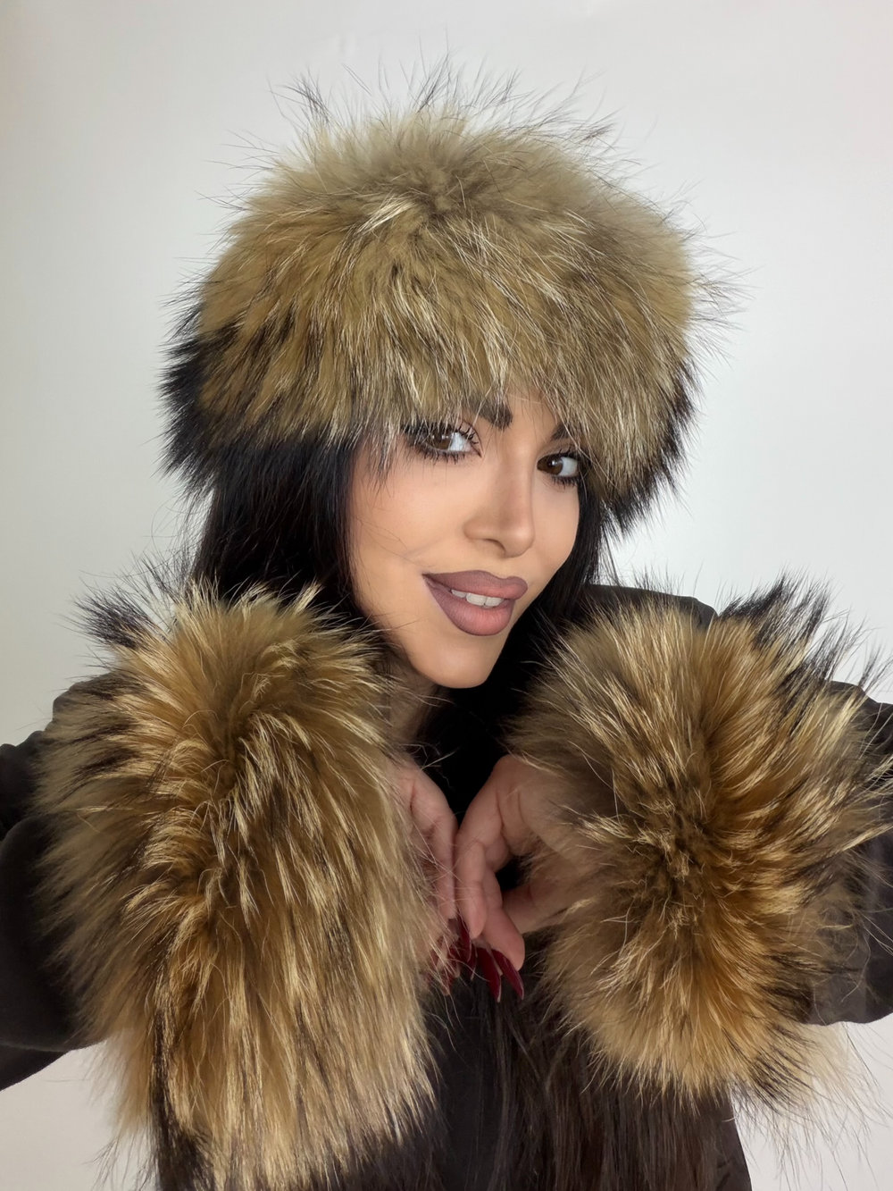 Set Fascia e polsini in Vera pelliccia di volpe vintage 01