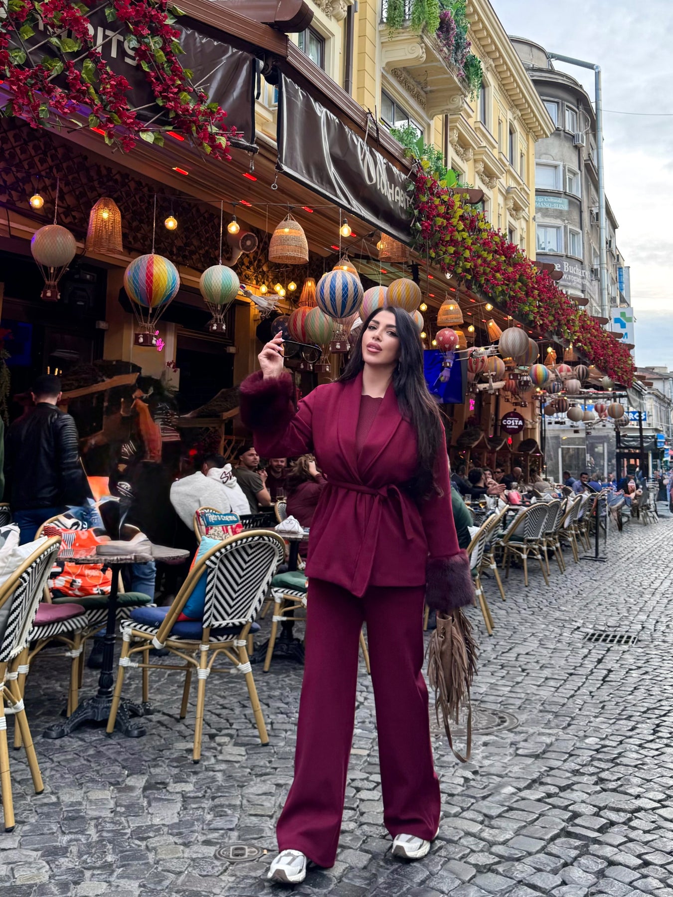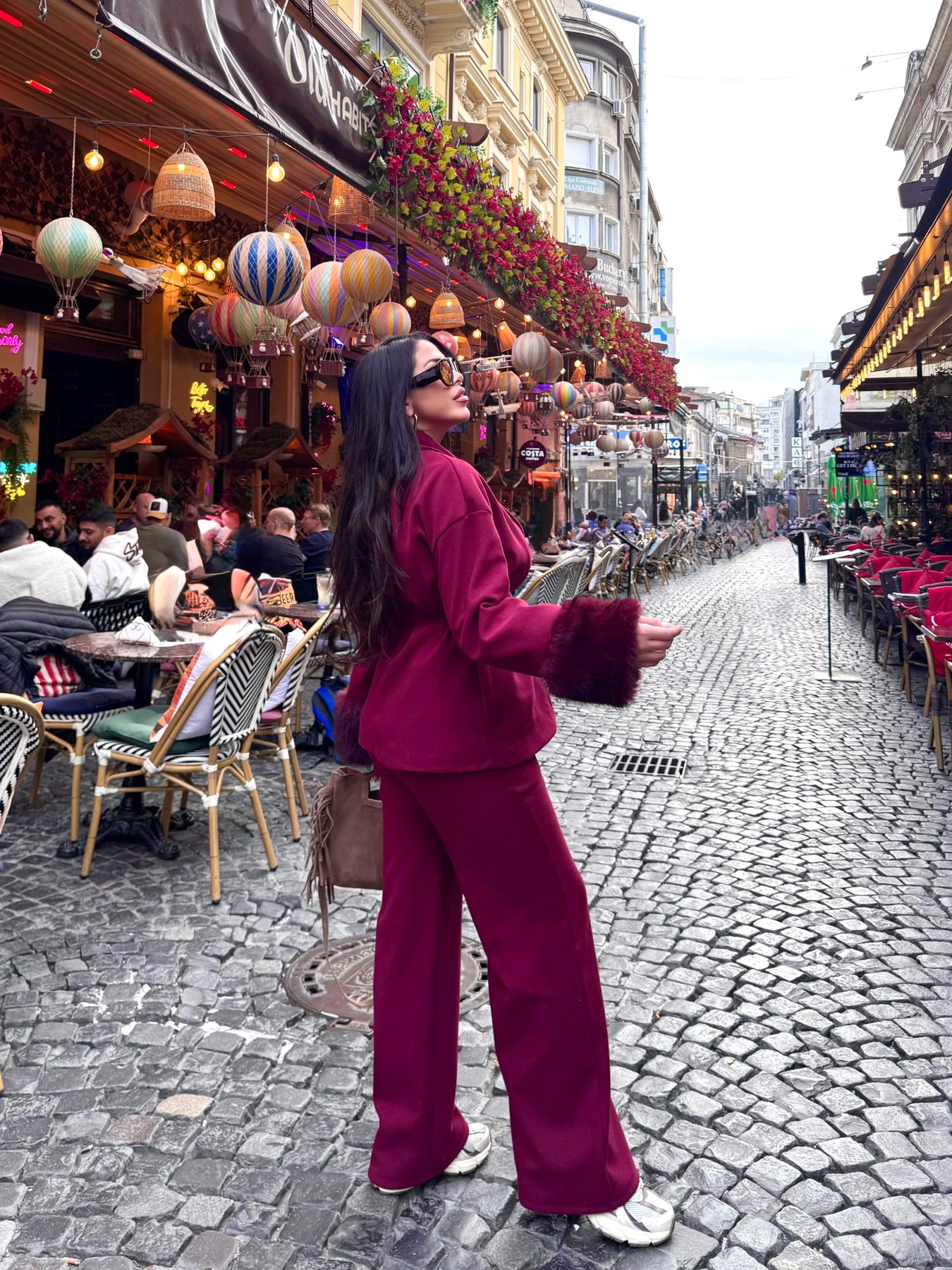 Coordinato in lana con dettagli in eco pelliccia “Bucarest”